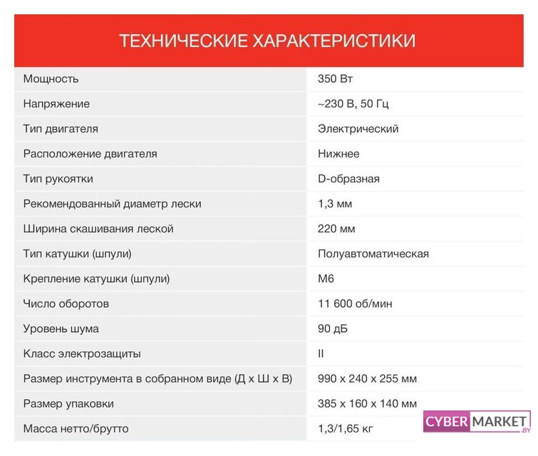 электрический, 350 Вт, оснастка: леска, ширина скашивания 26 см, вес 1.9 кг