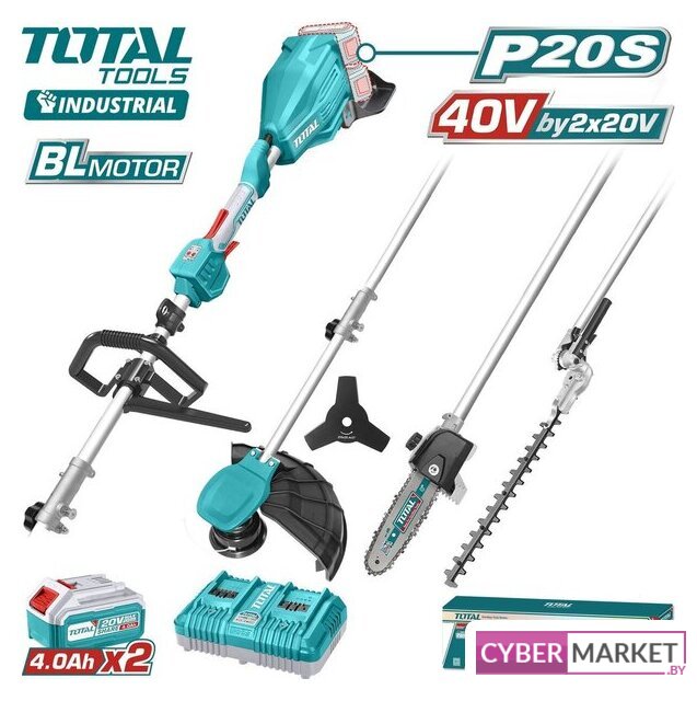 | Комплектация | - Корпус с бесщеточным двигателем - 1 шт.- Насадка-триммера TATLI4012 - 1 шт.- Насадка-кусторез TATLI4013 - 1 шт.- Насадка-высоторез TATLI4014 - 1 шт.- Аккумулятор TFBLI20021 4,0 Ач - 2 шт.- Зарядное устройство TCLI2034 на 2 аккумулятора - 1 шт.- Триммерная головка с леской 5 м - 1 шт.- Нож трехлопостной 255 мм - 1 шт.- Цепь 8'' - 1 шт.- Шина 8'' - 1 шт.- Чехол для шины - 1 шт.- Чехол для ножа кустореза - 1 шт.- Плечевой ремень - 1 шт.- Шестигранный ключ - 2 шт.- Гаечный ключ - 2 шт.- Инструкция- Коробка |