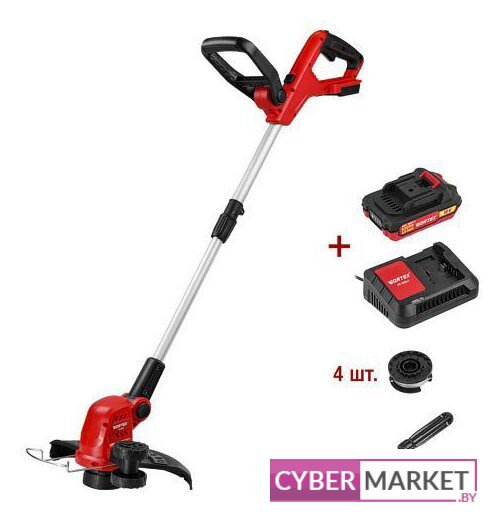 | Аксессуары | - Аккумуляторная батарея - 1 шт.- Зарядное устройство - 1 шт.- Дополнительная рукоятка- Катушка под леску (установлена)- Катушка с леской - 4 шт.- Защитный кожух- Кромочное колесо- Предохранитель- Винт- Отвертка- Паспорт- Упаковка |