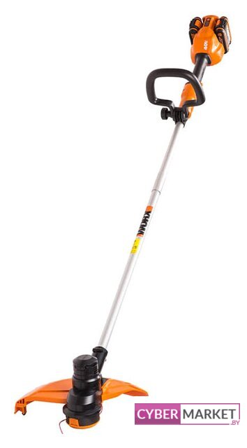 аккумуляторный, оснастка: леска+металлический нож, ширина скашивания 25.4-32 см, вес 4.3 кг