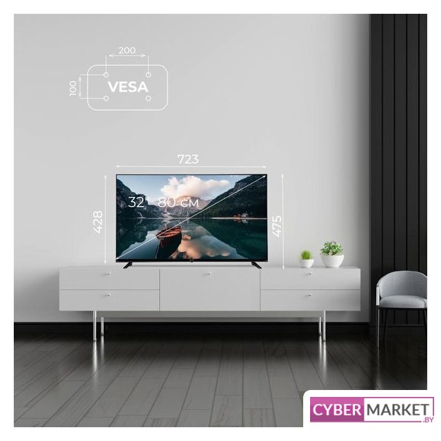 32" 1366x768 (HD), матрица VA, частота матрицы 60 Гц, Smart TV (Android), Wi-Fi