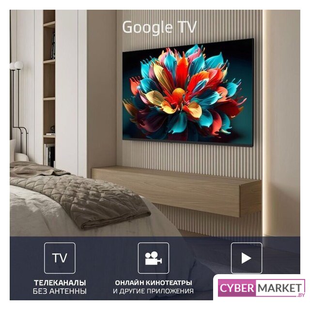 50" 3840x2160 (4K UHD), матрица VA, частота матрицы 60 Гц, Smart TV (Google TV), HDR10, HDR10+, Dolby Vision, HLG, DTS:HD, Dolby Atmos, DTS Virtual: X, AirPlay, Wi-Fi, смарт пульт