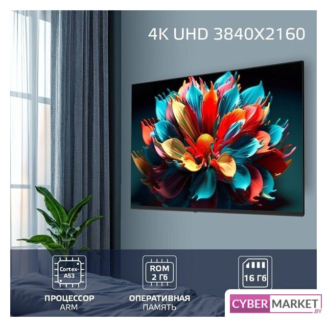 65" 3840x2160 (4K UHD), частота матрицы 60 Гц, Smart TV (Android), Wi-Fi