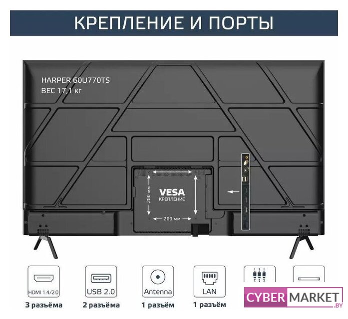 | Крепление VESA | 200x200 |