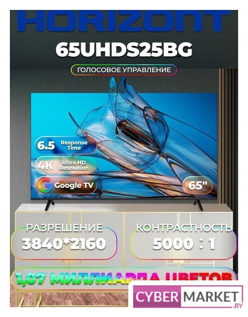 65" 3840x2160 (4K UHD), частота матрицы 60 Гц, Smart TV (Android TV), HLG, Wi-Fi, смарт пульт
