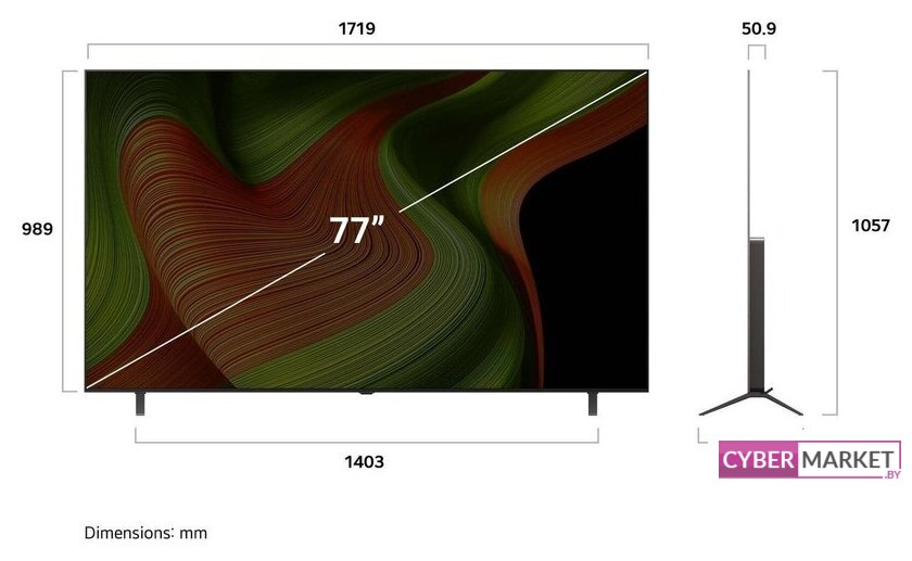 65" 3840x2160 (4K UHD), матрица OLED (WOLED), частота матрицы 120 Гц, Smart TV (LG webOS), HDR10, Dolby Vision, HLG, Dolby Atmos, AirPlay, Wi-Fi, смарт пульт