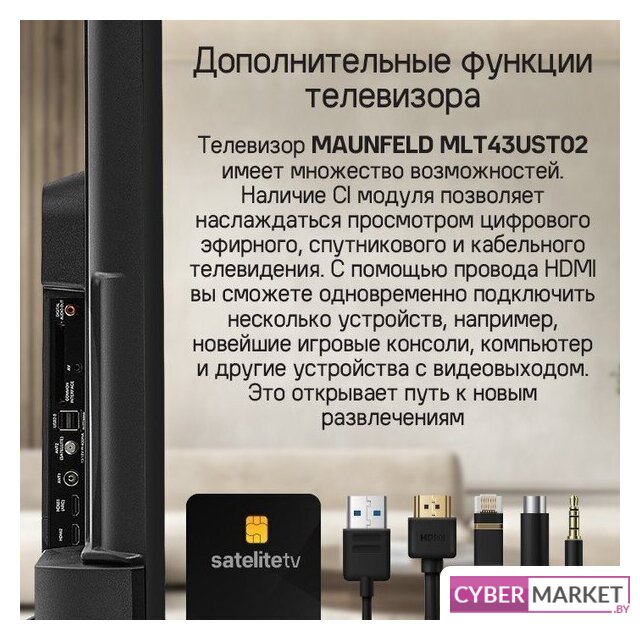 43" 3840x2160 (4K UHD), частота матрицы 50 Гц, Smart TV (Android), Wi-Fi