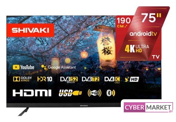 65" 3840x2160 (4K UHD), матрица IPS, частота матрицы 60 Гц, Smart TV (Android TV), HDR10+, Wi-Fi