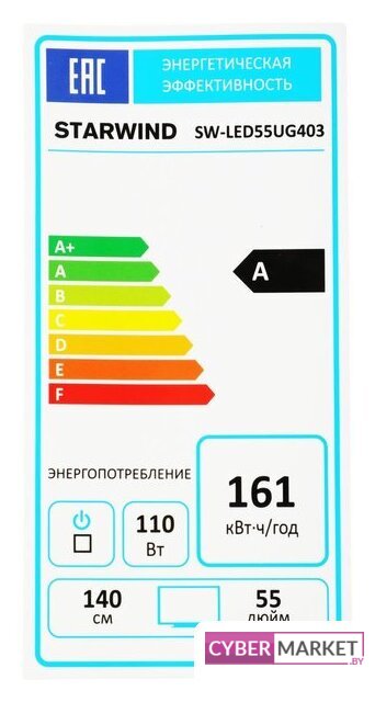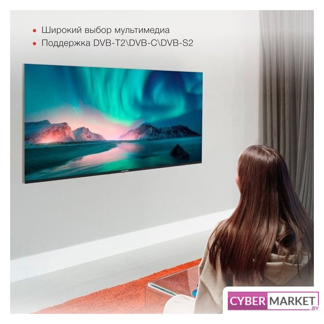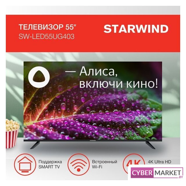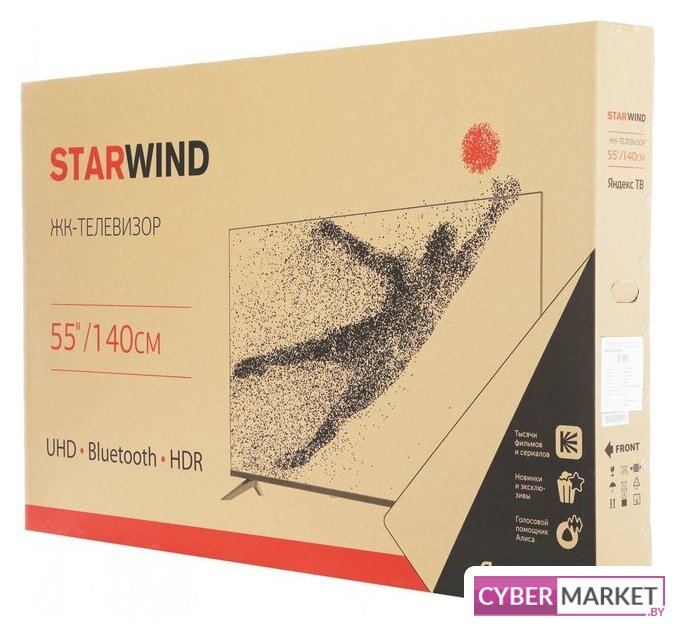 55" 3840x2160 (4K UHD), матрица VA, частота матрицы 60 Гц, Smart TV (Яндекс.ТВ), HDR10, Wi-Fi, смарт пульт