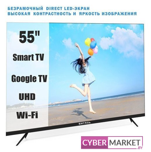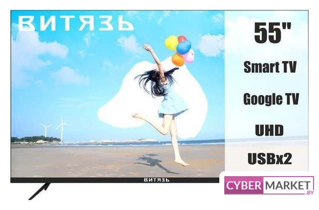 55" 3840x2160 (4K UHD), частота матрицы 60 Гц, Smart TV (Android TV), HDR10, HLG, DTS:HD, DTS:X, Wi-Fi, смарт пульт