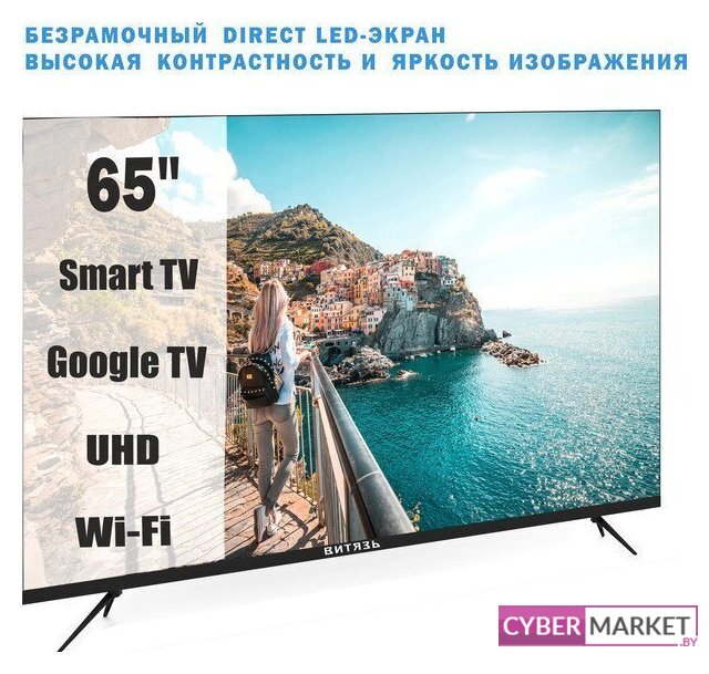65" 3840x2160 (4K UHD), частота матрицы 60 Гц, Smart TV (Android TV), HDR10, HLG, DTS:HD, DTS:X, Wi-Fi, смарт пульт