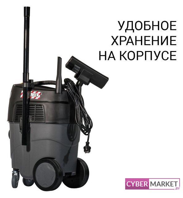 строительный, пылесборник: мешок+контейнер, потребление: 1600 Вт, без регулировки мощности, шум 85 дБ