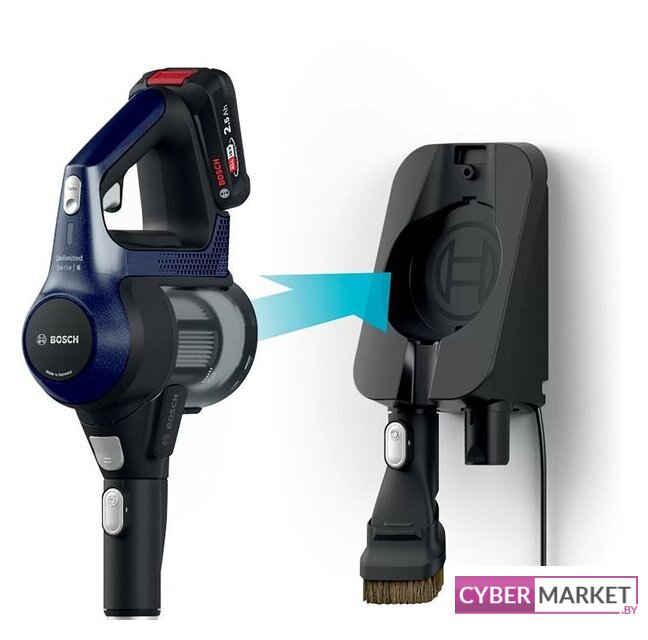вертикальный 2-в-1, аккумулятор, регулировка мощности, турбощетка, док-станция с зарядкой, шум 82 дБ