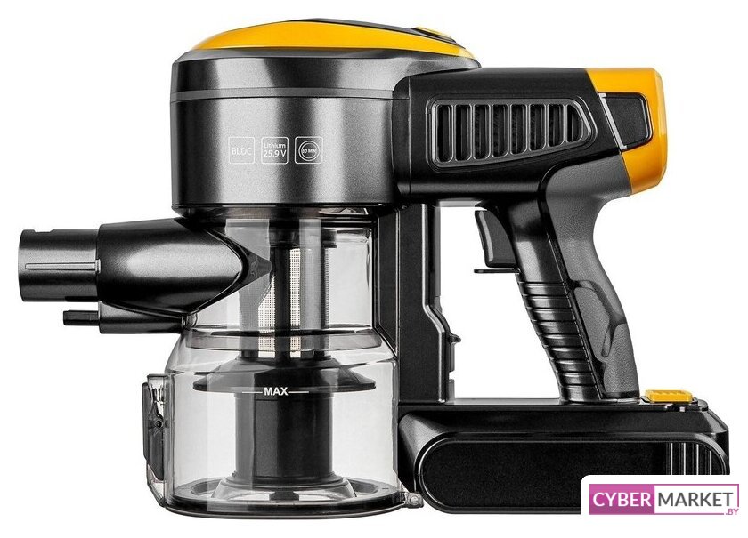 вертикальный 2-в-1, пылесборник: контейнер, потребление: 500 Вт, регулировка мощности на корпусе, шум 83 дБ, турбощетка