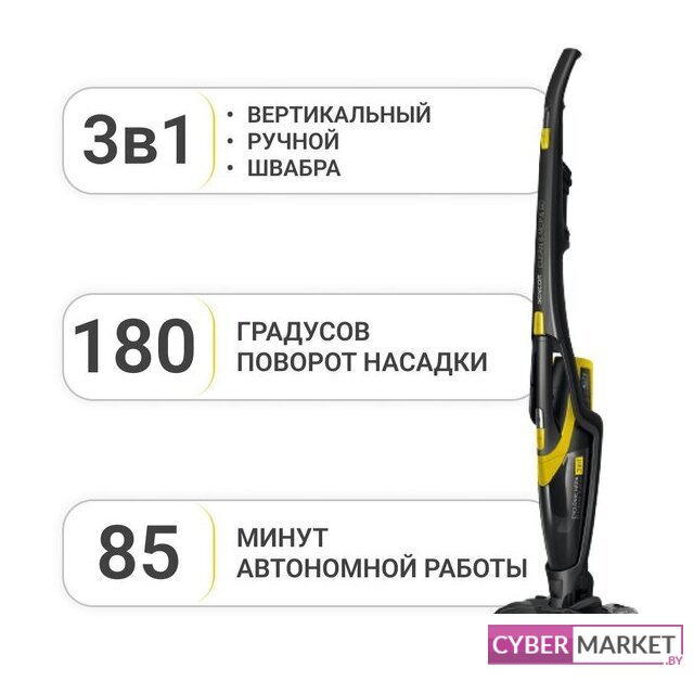вертикальный 2-в-1/вертикальный с влажной уборкой, аккумулятор, мощность всасывания: 380 Вт, потребление: 350 Вт, регулировка мощности, шум 80 дБ
