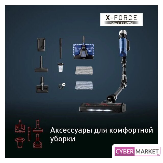 вертикальный с влажной уборкой, аккумулятор, потребление: 550 Вт, регулировка мощности, турбощетка, док-станция с зарядкой, шум 83 дБ