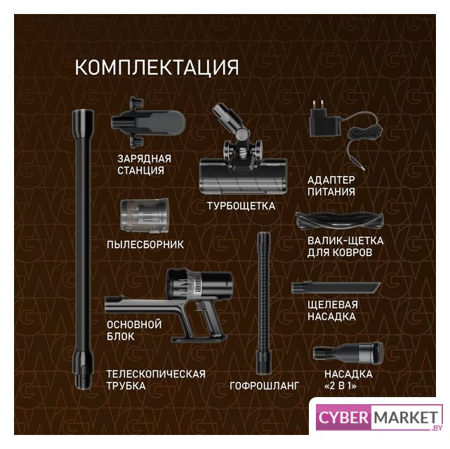 вертикальный 2-в-1/вертикальный с влажной уборкой, аккумулятор, регулировка мощности, турбощетка, док-станция с зарядкой, шум 82 дБ