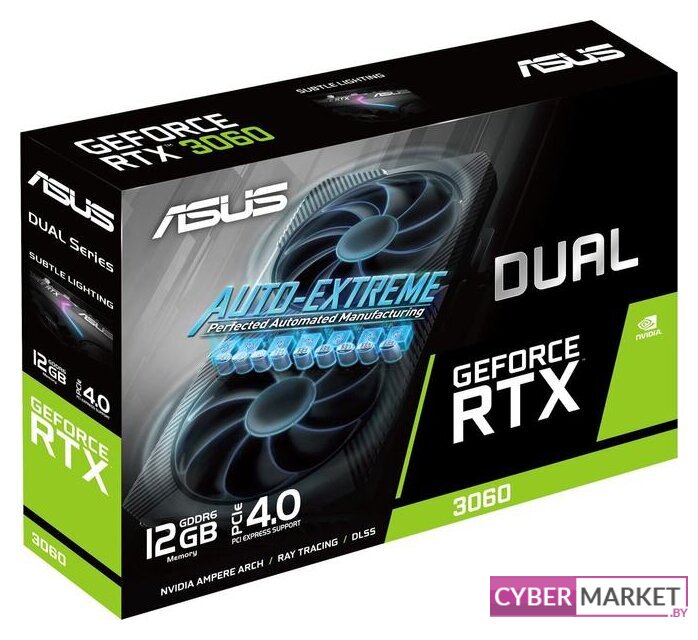 12 ГБ GDDR6 LHR, 1320 МГц / 1792 МГц, 3584sp, 28 RT-ядер, трассировка лучей, 192 бит, 2 слота, питание 8 pin, HDMI, DisplayPort