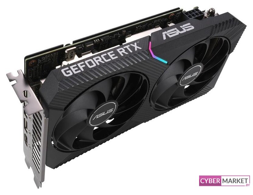 8 ГБ GDDR6 LHR, 1320 МГц / 1807 МГц, 3584sp, 28 RT-ядер, трассировка лучей, 128 бит, 2 слота, питание 8 pin, HDMI, DisplayPort