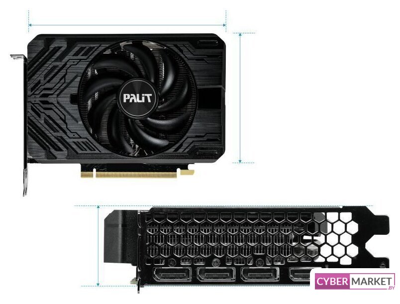 8 ГБ GDDR6, 2310 МГц / 2595 МГц, 4352sp, 34 RT-ядер, трассировка лучей, 128 бит, 2.5 слота, питание 8 pin, HDMI, DisplayPort