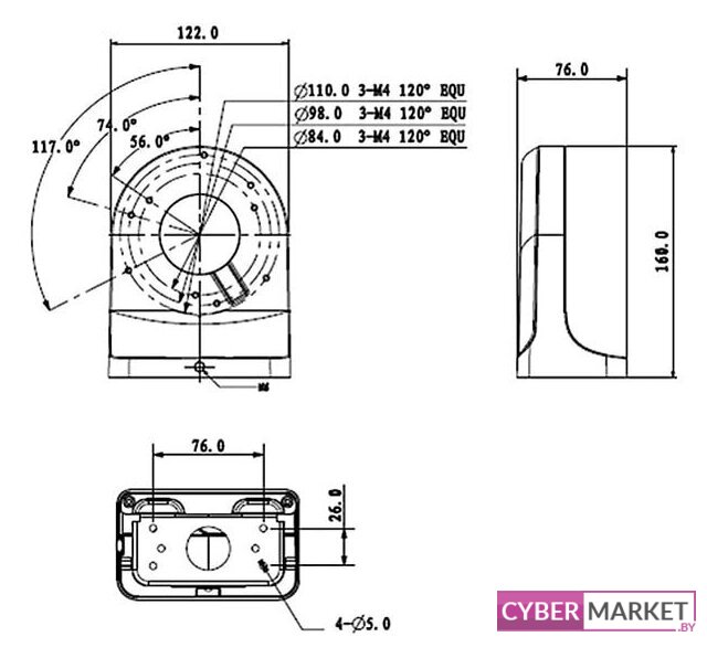 для проекторов, настенный, поворотный, кабель-канал, наклон 30°, поворот 360°, цвет белый
