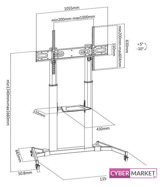 | Регулировка высоты | 1 340 — 1 660 мм |