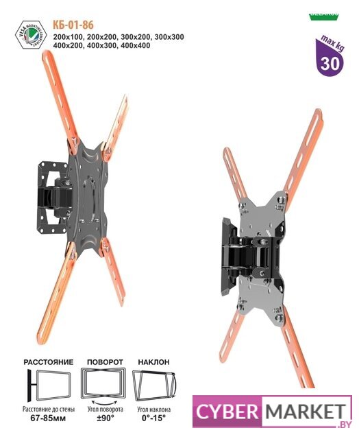 настенный кронштейн для ЖК-телевизора 10-40", наклон 15°, цвет черный