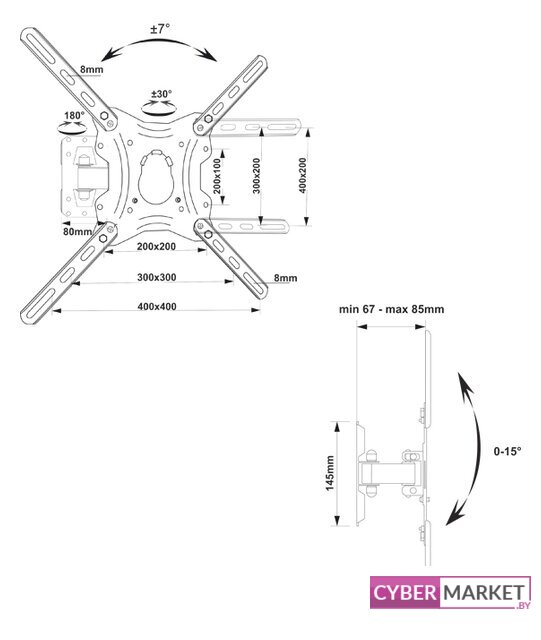 | Расстояние от стены (потолка) | 67 — 85 мм |