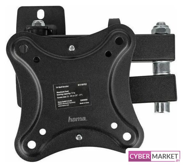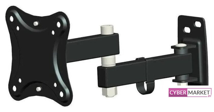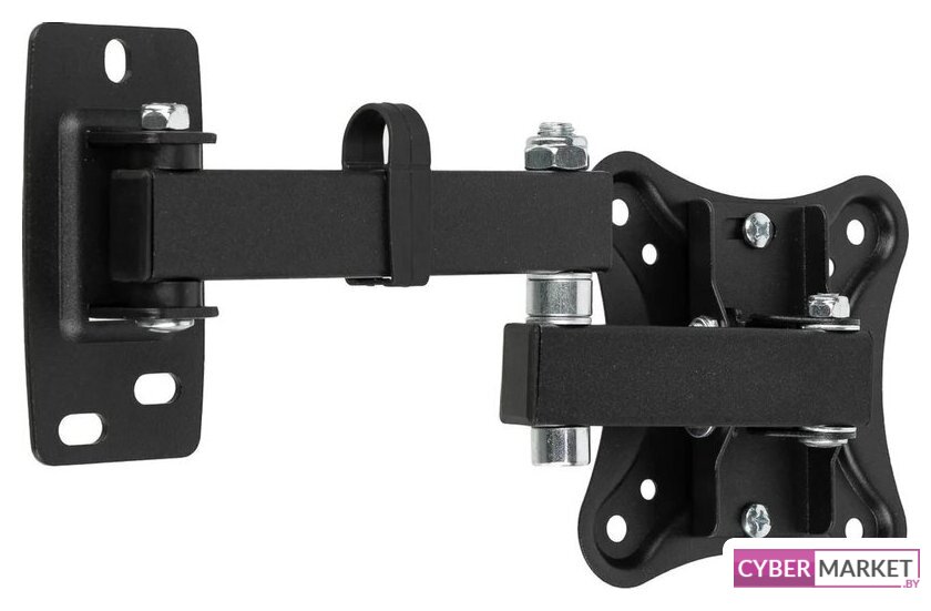 кронштейн для телевизора, 13-43", настенный, с регулировкой поворота, с кабель-каналом, наклон -15-5°, поворот -90-90°, цвет черный