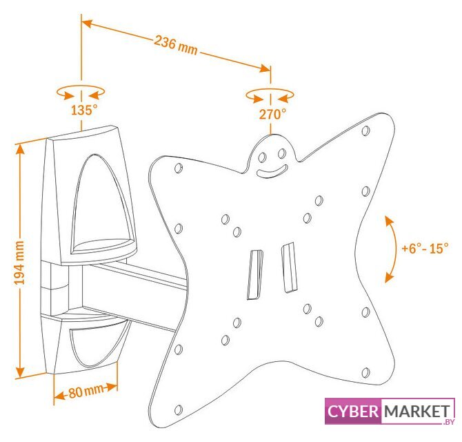 настенный кронштейн для ЖК-телевизора 14-23", наклон 15°, поворот 90°, цвет белый