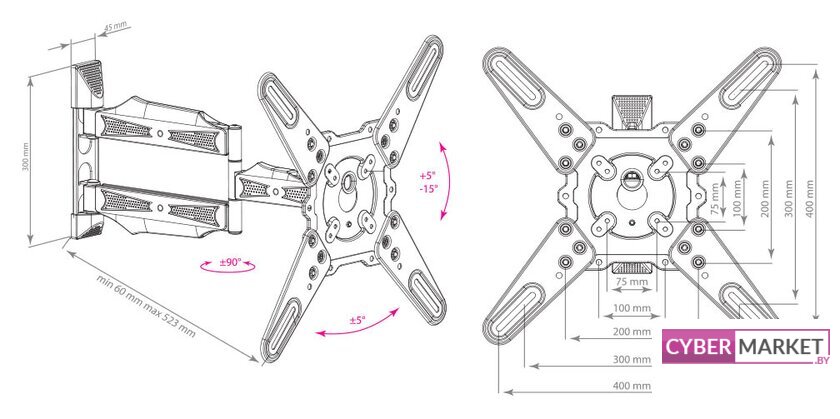 | Расстояние от стены (потолка) | 60 — 523 мм |