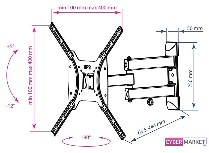 | Расстояние от стены (потолка) | 66.5 — 444 мм |