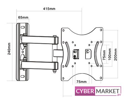 для ЖК-телевизоров, 23-43", настенный, поворотный, кабель-канал, наклон 10°, поворот 90°, цвет черный
