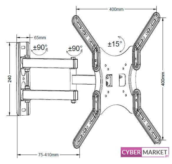 настенный кронштейн для ЖК-телевизора 37-55", наклон 0°, поворот 15°, цвет черный