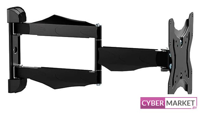 кронштейн для телевизора, 13-55", настенный, с регулировкой поворота, с кабель-каналом, наклон -15-5°, поворот -90-90°, цвет черный