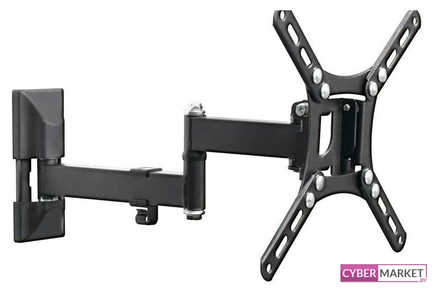 кронштейн для телевизора, 13-55", настенный, с регулировкой поворота, с кабель-каналом, наклон -15-5°, поворот -90-90°, цвет черный