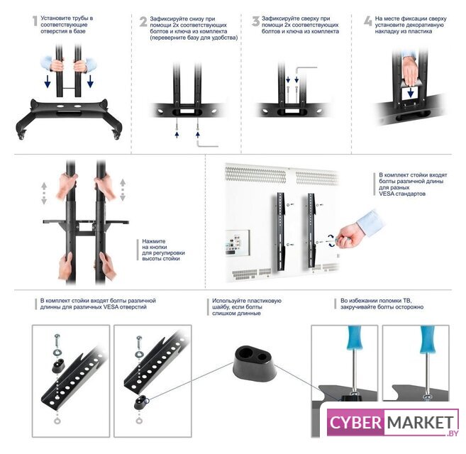 | Совместимость с креплением VESA | 200x200, 200x300, 300x200, 300x300, 400x300, 400x400, 600x400, 600x500, 600х600, 670x400, 700x400, 700x500, 800x200, 800x400, 800x500 |