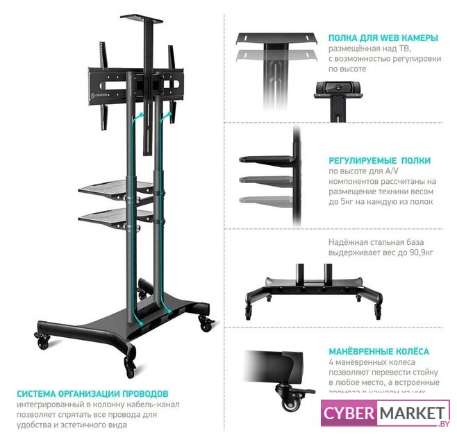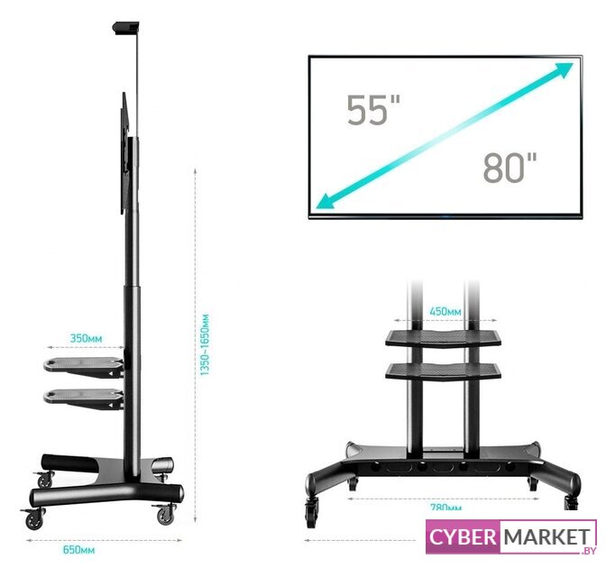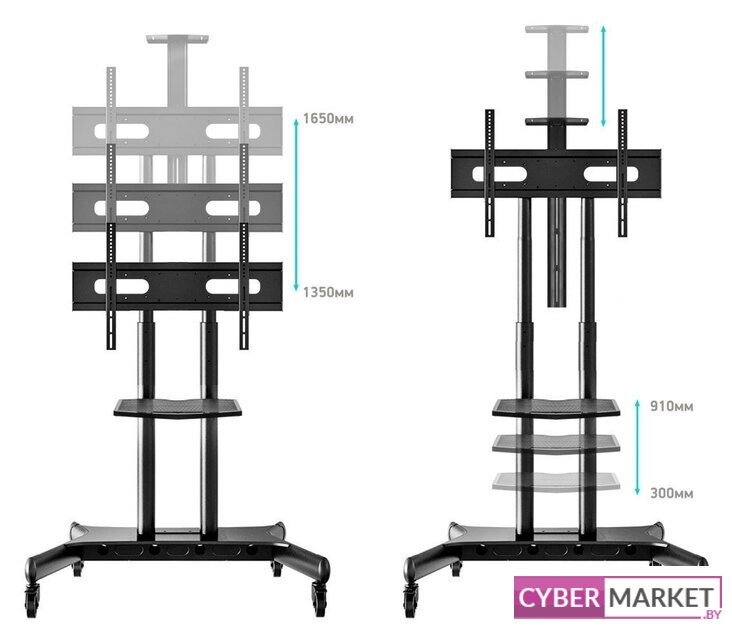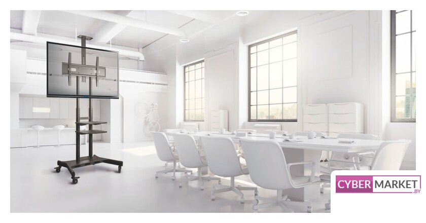 для ЖК-телевизоров, 50-100", напольный, с регулировкой высоты, наклон 5°, регулировка высоты 1234-1685 мм, цвет черный