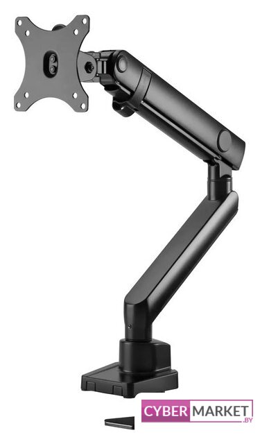для мониторов, 17-27", 2 монитора, настольный, поворотный, с регулировкой высоты, кабель-канал, струбцинное крепление, наклон 80°, поворот 90°, регулировка высоты 0-400 мм, цвет черный