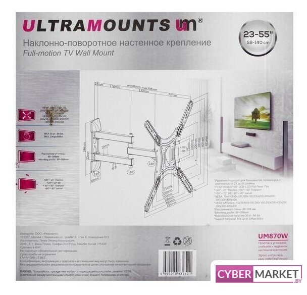 настенный кронштейн для ЖК-телевизора 32-65", цвет черный