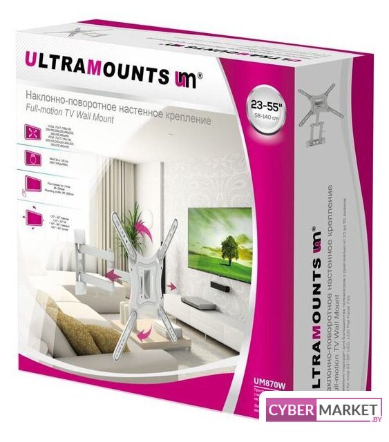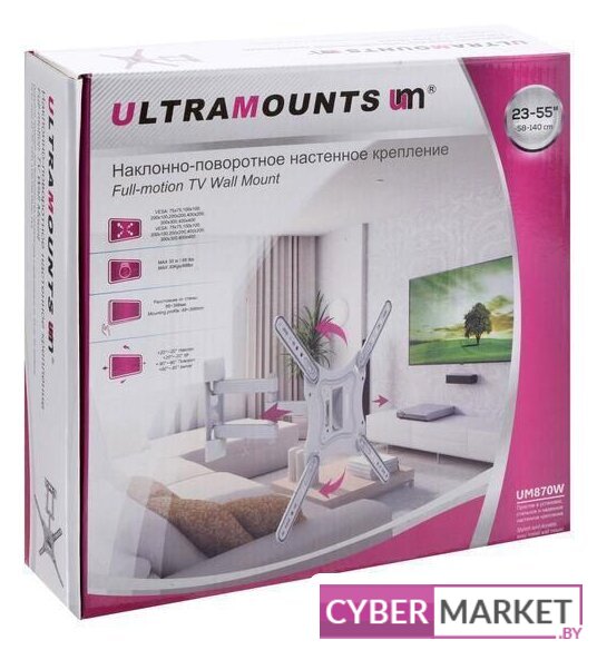 для ЖК-телевизоров, 23-43", настенный, поворотный, кабель-канал, наклон 13°, поворот 90°, цвет черный