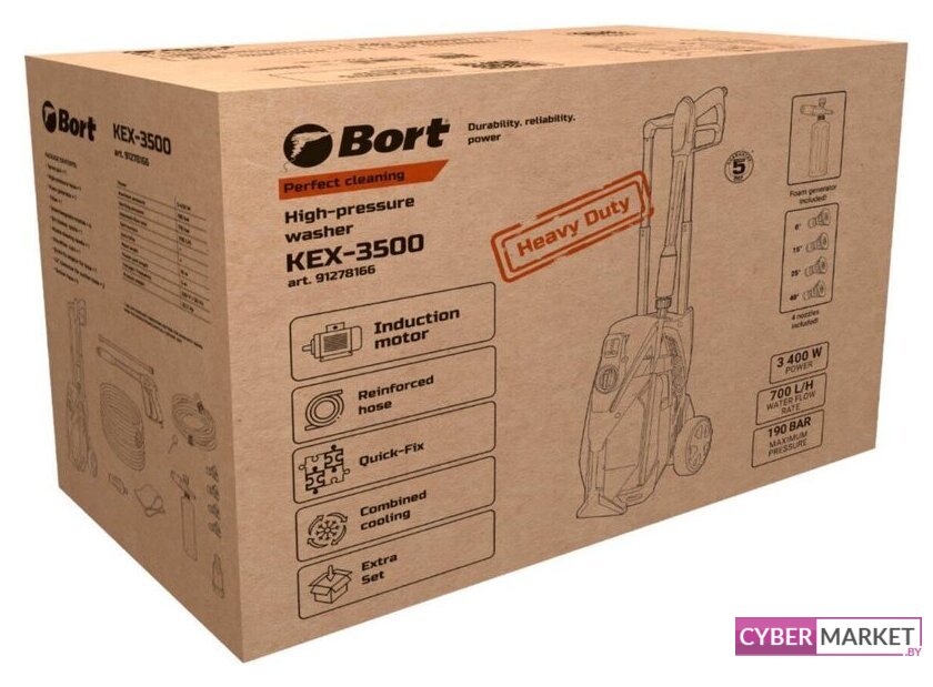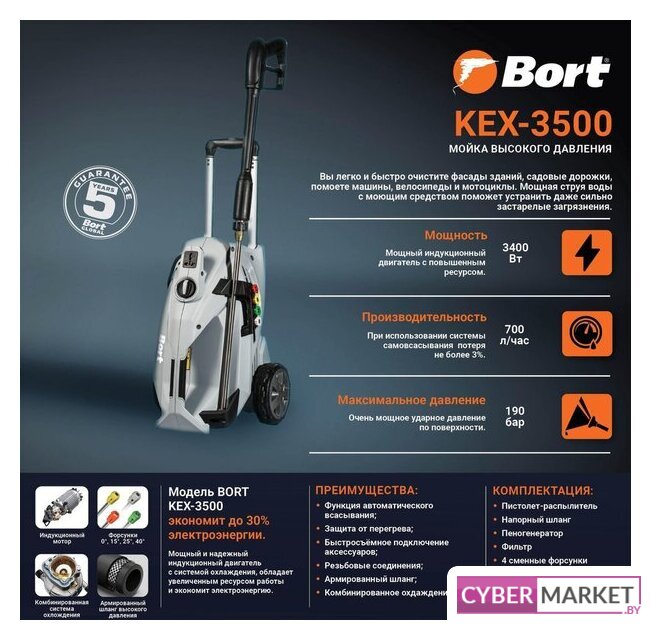 2700 Вт, 600 л/ч, максимальное допустимое давление: 190 Бар, длина шланга: 5 м