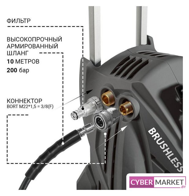 2500 Вт, 720 л/ч, максимальное рабочее давление: 105 Бар, длина шланга: 10 м