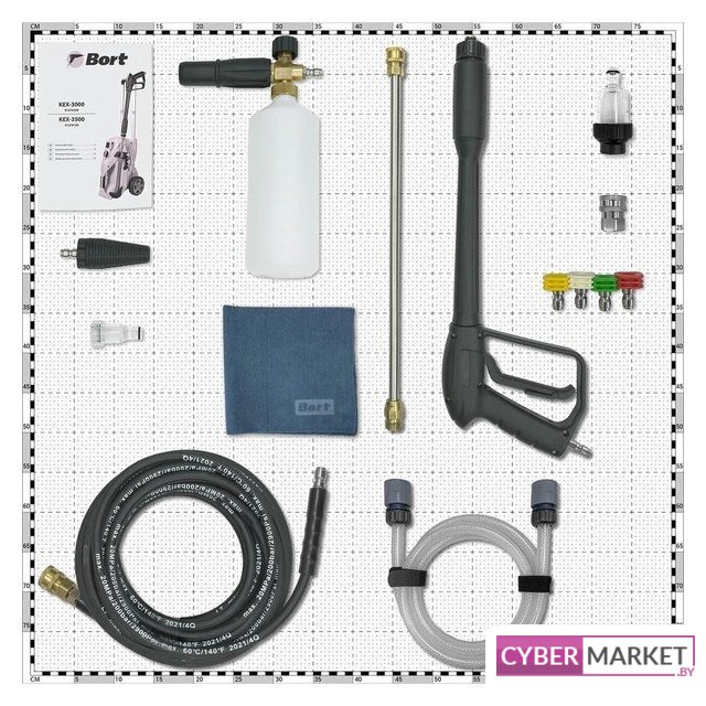 | Комплектация | - Пистолет-распылитель (1 шт), - Напорный шланг (1 шт), - Пеногенератор (1 шт), - Фильтр (2 шт), - Сменные форсунки (4 шт), - Грязевая фреза (1 шт), - Игла для очистки сопла (1 шт), - Шланг заборный (1 шт), - Салфетка из микрофибры (1 шт), - Коннектор M22*1,5 = 3/8(F) (1 шт) |