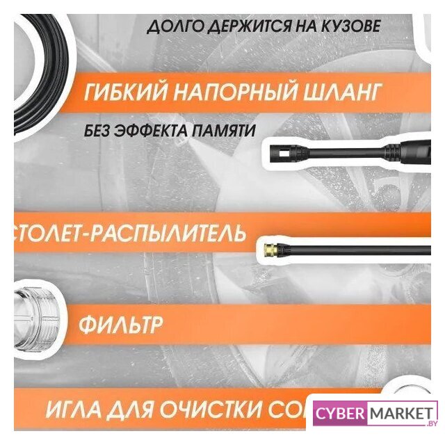 | Комплектация | Пистолет-распылитель (1 шт)Напорный шланг (1 шт)Фильтр (1 шт)Пеногенератор (1 шт)Сменные форсунки (2 шт)Игла для очистки сопла (1 шт) |