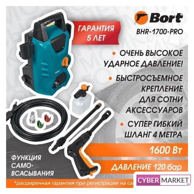 1700 Вт, 330 л/ч, максимальное рабочее давление: 140 Бар, длина шланга: 5 м