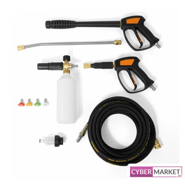 | Комплектация | Мойка высокого давления - 1 шт.Профессиональный пистолет DPG350 550мм - 1 шт.Металлическое копье из нержавеющей стали 455 мм - 1 шт.Короткий пистолет для пеногенератора - 1 шт.Армированный шланг высокого давления 10м - 1 шт.Профессиональный пеногенератор - 1 шт.Быстросъемные форсунки (0°/15°/25°/40°) - 4 шт.Фильтр тонкой очистки - 1 шт.Кабель подключения 275 мм - 1 шт.Вилка 220В, 16А - 1 шт.Вилка 220В, 32А - 1 шт.ИнструкцияКоробка |