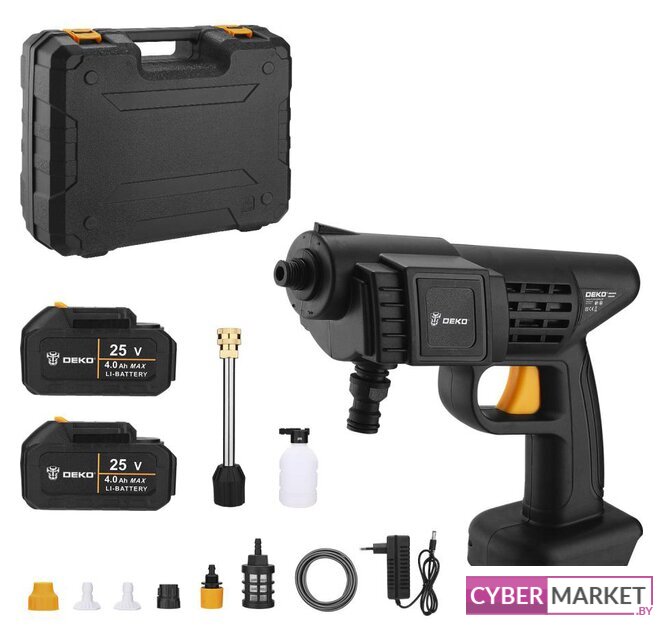 | Комплектация | - Мойка - 1 шт- Аккумулятор Li-Ion - 2 шт- Штанга - 1 шт- Переходник для шланга - 1 шт- Фильтр для шланга - 1 шт- Шланг - 1 шт- Насадка-распылитель - 2 шт- Емкость для моющего средства - 1 шт- Зарядное устройство - 1 шт- Руководство по эксплуатации - 1 шт |