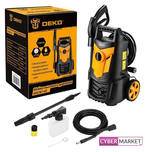 1400 Вт, 342 л/ч, максимальное рабочее давление: 70 Бар, максимальная температура на входе: 50 °C, длина шланга: 5 м
