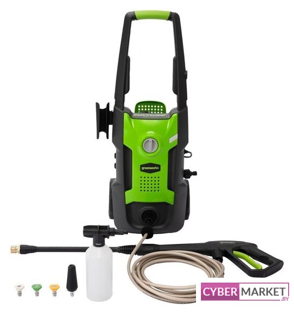 | Комплектация | - Мойка высокого давления Greenworks GPWG3II 1700Вт (арт.5107007);- Пистолет с трубкой-удлинителем;- Набор из 3-х насадок: 15 / 25 / 40 градусов — для различных задач;- Ротационная насадка (турбо-фреза);- Насадка - пеногенератор;- Шланг высокого давления 6 м;- Штуцер с фильтром грубой очистки;- Игла для прочистки форсунок;- Руководство по эксплуатации;- Гарантийный талон. |